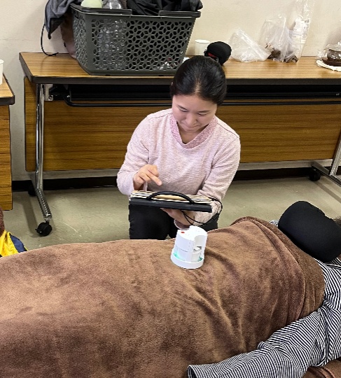 その後には、今回もボランティアさんが来て下さり CS60の施術体験会を実施しました。